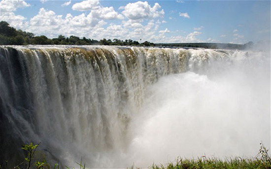津巴布韋境內(nèi)為游客提供更長(zhǎng)的登崖道路,沿路經(jīng)過(guò)美麗的熱帶雨林,峽谷邊緣還有16個(gè)景點(diǎn)。如魔鬼瀑布,當(dāng)河水充盈時(shí),每秒流過(guò)的水量高達(dá)7500立方米,洶涌的河水沖向懸崖,形成了水花飛濺的魔鬼瀑布。